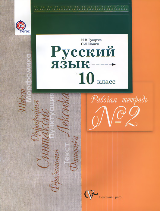 | Полное название книги | И. В. Гусарова, С. Л. Иванов 10 кл. Гусарова И.В., Иванов С.Л. Русский язык (базовый и углубленный уровни). Рабочая тетрадь №2 (Новинка) (ФГОС) |