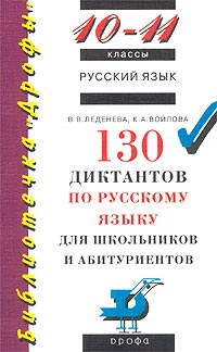 | Полное название книги | К. А. Войлова, В. В. Леденева 130 диктантов по русскому языку для школьников и абитуриентов. 10 - 11 классы |