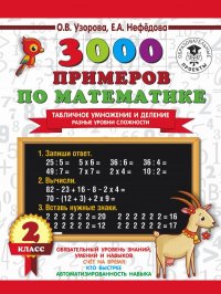 | Полное название книги | Нефедова Елена Алексеевна Узорова, Ольга Васильевна 3000 примеров по математике. Табличное умножение и деление. Разные уровни сложности. 2 класс |