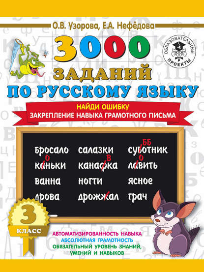 | Полное название книги | Елена Алексеевна Нефедова, Ольга Васильевна Узорова 3000 примеров по русскому языку. 3 класс. Найди ошибку. Закрепление навыка грамотного письма |