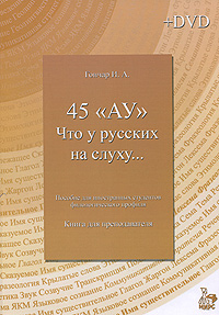Цель комплекса - развитие умений в аудировании текстов российских СМИ, затрагивающих социокультурные аспекты функционирования русского языка. Это и многое другое вы найдете в книге 45 "Ау". Что у русских на слуху… Пособие по аудированию для иностранных студентов филологического профиля. Книга для преподавателя (+ DVD-ROM) (И. А. Гончар)
