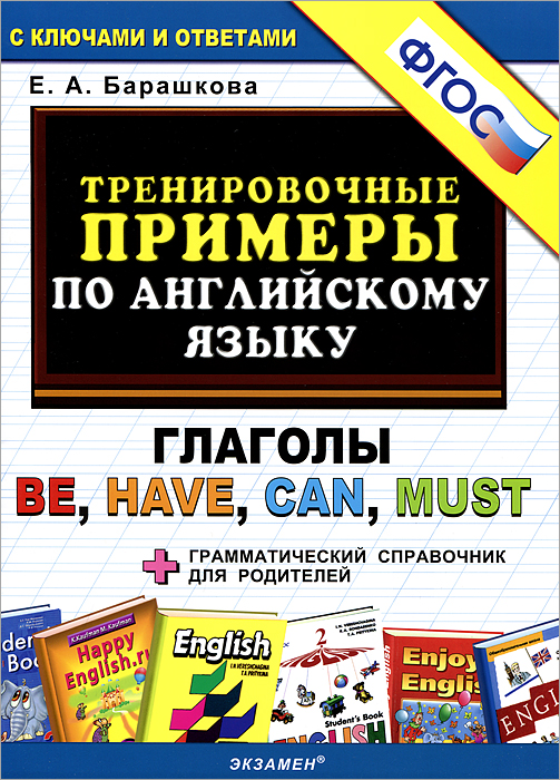 | Полное название книги | Е. А. Барашкова 5000. ТРЕНИРОВОЧНЫЕ ПРИМЕРЫ ПО АНГЛИЙСКОМУ ЯЗЫКУ: ГЛАГОЛЫ BE,HAVE,CAN,MUST. ФГОС |