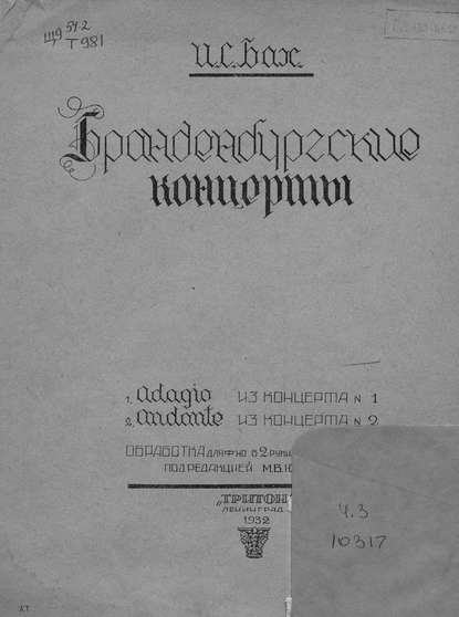 | Полное название книги | Иоганн Себастьян Бах, Адажио из концерта № 1 |