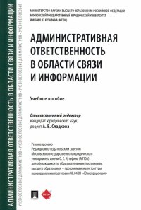 | Полное название книги | Марьям Владимировна Анисифорова, Тим Сергеевич Анисифоров, Анастасия Вячеславовна Сладкова Административная ответственность в области связи и информации. Учебное пособие |