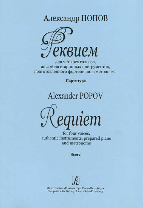 | Полное название книги | Александр Попов Александр Попов. Реквием для четырех голосов, ансамбля старинных инструментов, подготовленного фортепиано и метронома. Партитура |