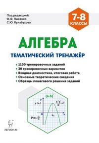 | Полное название книги | Виктор Кривенко, Дмитрий Ханин, Елена Коннова, Нина Резникова, Галина Нужа, Людмила Ольховская Алгебра. 7-8 классы. Тематический тренажер. Входная диагностика, итоговая работа |