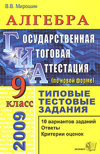 | Полное название книги | В. В. Мирошин Алгебра. 9 класс. Государственная аттестация (по новой форме). Типовые тестовые задания |