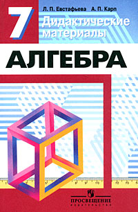 | Полное название книги | Л. П. Евстафьева, А. П. Карп Алгебра. Дидактические материалы. 7 класс |