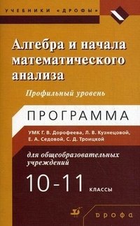 Программа изучения курса алгебры и начал математического анализа на профильном уровне является частью учебно-методического комплекта по алгебре и началам математического анализа для 10-11 классов Г.В.Дорофеева, Л.В.Кузнецовой, К.Л.Седовой, С.Д.Троицкой.