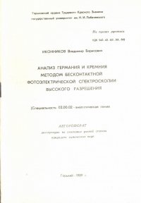 | Полное название книги | В. Иконников Анализ германия и кремния методом бесконтактной фотоэлектрической спректроскопии высокого разрешения |