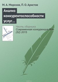 | Полное название книги | Морозов М. А., Аристов П. О. Анализ конкурентоспособности услуг в ресторанном и досугово-развлекательном бизнесе |