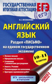| Полное название книги | Е. С. Музланова Английский язык. 10-11 классы. Раздел "Письмо" на едином государственном экзамене |