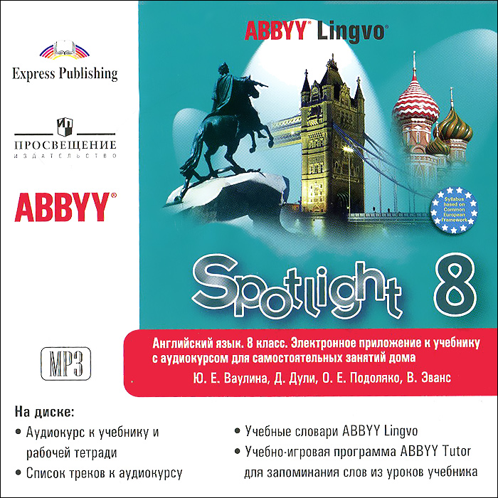 - Учебно-игровая программа ABBYY Tutor для запоминания слов из уроков учебника. Это и многое другое вы найдете в книге Английский язык. 8 класс (аудиокурс MP3) (Ю. Е. Ваулина, Д. Дули, О. Е. Подоляко, В. Эванс)