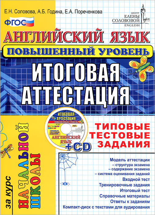 | Полное название книги | А. Б. Година, Е. Н. Соловова, Е. А. Пореченкова Английский язык. Итоговая аттестация за курс начальной школы (повышенный уровень). Типовые тестовые задания (+ CD-ROM) |