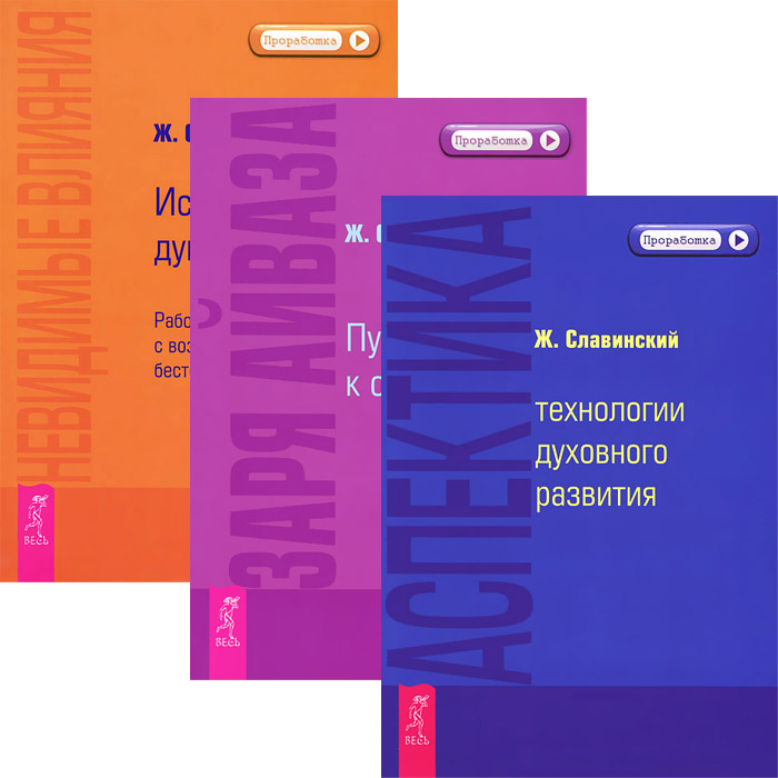 | Полное название книги | Ж. Славинский Аспектика. Технологии духовного развития. Заря Айваза. Путь к осознанности. Невидимые влияния. Исцеление души. Работа с воздействиями бестелесных существ (комплект из 3 книг) |