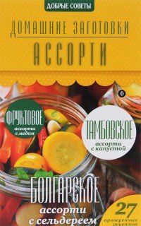 Традиционные способы заготовок по старым и умным рецептам возвращают к атмосфере приятных домашних хлопот и обещают необыкновенное вкусовое разнообразие. Приготовленные вкусности будут радовать каждый день и напомнят о многоцветье урожая. 27 проверенных рецептов: фруктовое ассорти с медом, тамбовское ассорти с капустой, болгарское ассорти с сельдереем, и др. Это и многое другое вы найдете в книге Ассорти (Наталия Потапова)