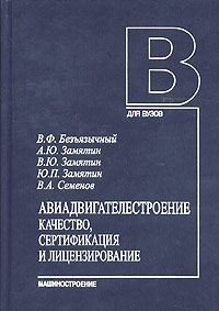 | Полное название книги | В. Ю. Замятин, Ю. П. Замятин, А. Ю. Замятин, В. А. Семенов, В. Ф. Безъязычный Авиадвигателестроение. Качество, сертификация и лицензирование |