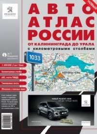 Авто Атлас России от Калининграда до Урала с километровыми столбами масштаб 1:900000. В атлас включены 38907 километровых столбов, 109288 населенных пунктов, 43 диллера КАМАЗ.
