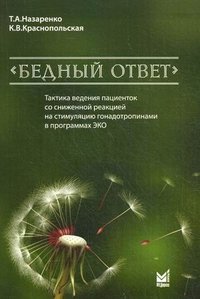 | Полное название книги | К. В. Краснопольская, Т. А. Назаренко Бедный ответ. Тактика ведения пациенток со сниженной реакцией на стимуляцию гонадотропинами в программах ЭКО. 2-е изд. Назаренко Т.А., Краснопольская К.В |