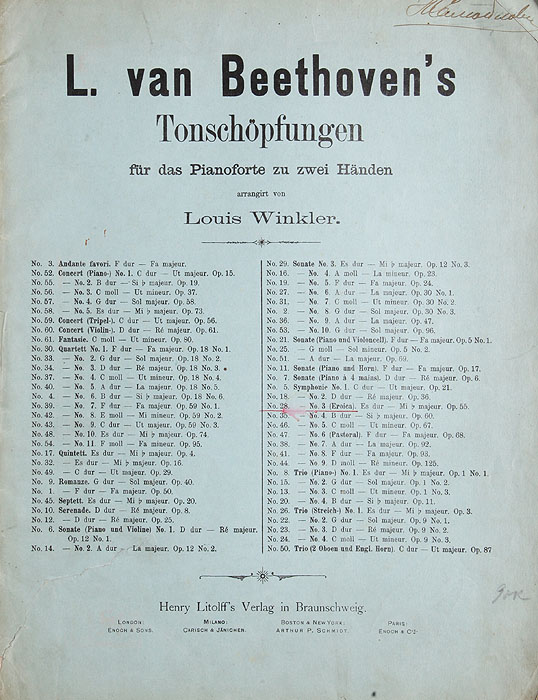 Брауншвейг, начало XX века. Издательство "Henry Litolf's Verlag". Типографская обложка. Сохранность хорошая. Аранжировка Третьей (Героической) симфонии Л. ван Бетховена, выполненная Луи Винклером, для фортепиано. Не подлежит вывозу за пределы Российской Федерации. Это и многое другое вы найдете в книге Beethoven. Symphonie № 3 (Eroica). Для игры на фортепиано в 2 руки (Beethoven)