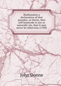 | Полное название книги | Джон Донн Biathanatos a declaration of that paradox, or thesis, that self-homicide is not so naturally sin, that it may never be otherwise (1700) |