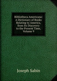 | Полное название книги | Joseph Sabin Bibliotheca Americana: A Dictionary of Books Relating to America, from Its Discovery to the Present Time, Volume 9 |