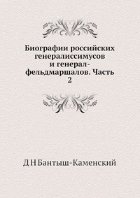 | Полное название книги | Д. Н. Бантыш-Каменский Биографии российских генералиссимусов и генерал-фельдмаршалов. Часть 2 |