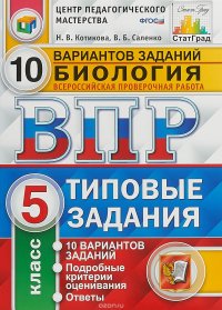 | Полное название книги | Н. В. Котикова, В. Б. Саленко Биология. 5 класс. Всероссийская проверочная работа. 10 вариантов. Типовые задания |