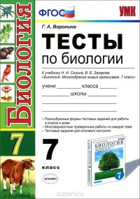 | Полное название книги | Г. А. Воронина Биология. 7 класс. Тесты к учебнику Н. И. Сонина, В. Б. Захарова |