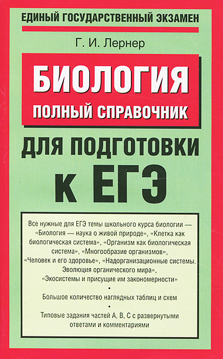 | Полное название книги | Г. И. Лернер Биология. Полный справочник для подготовки к ЕГЭ |