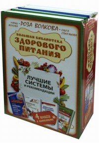 | Полное название книги | Мария Жукова, Ольга Строганова, Роза Волкова Большая библиотека здорового питания. Лучшие системы и рекомендации (комплект из 4 книг) |
