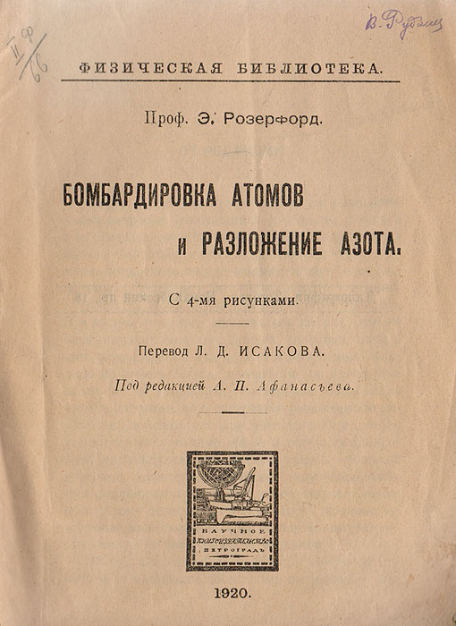 | Полное название книги | Э.Резерфорд Бомбардировка атомов и разложение азота |