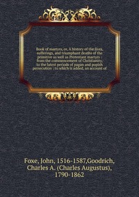 Book of martyrs, or, A history of the lives, sufferings, and triumphant deaths of the primitive as well as Protestant martyrs. From the commencement of Christianity, to the latest periods of pagan and popish persecution. To which is added, an account of Воспроизведено в оригинальной авторской орфографии издания 1883 года (издательство "Hartford : E. Hall"). Это и многое другое вы найдете в книге Book of martyrs (John Foxe)