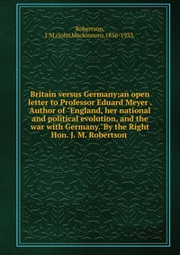 | Полное название книги | John Mackinnon Robertson Britain versus Germany |