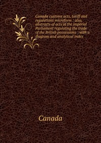 Canada customs acts, tariff and regulations microform. Also, abstracts of acts of the imperial Parliament regulating the trade of the British possessions. With a diagram and analytical index Воспроизведено в оригинальной авторской орфографии издания 1854 года (издательство "Quebec : S. Derbishire & G. Desbarats"). Это и многое другое вы найдете в книге Canada customs acts, tariff and regulations microform (Canada)