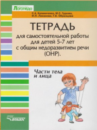 | Полное название книги | И. П. Лиханова, С. А. Калиниченко, М. С. Гудкова, Г. Е. Образцова Части тела и лица. Тетрадь для самостоятельной работы для детей 5-7 лет с общим недоразвитием речи (ОНР) |