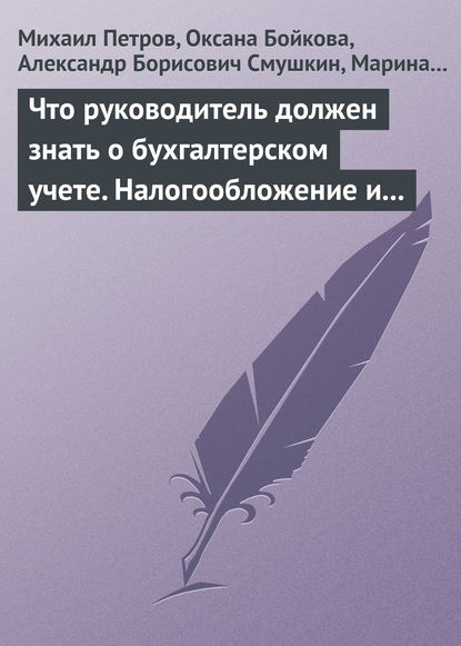 | Полное название книги | Оксана Бойкова, Михаил Игоревич Петров, Александр Борисович Смушкин, Валентина Владимировна Баталина, Надежда Владимировна Драгункина, Марина Викторовна Филиппова Что руководитель должен знать о бухгалтерском учете. Налогообложение и трудовое законодательство |