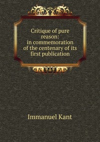 | Полное название книги | Иммануил Кант Critique of pure reason: in commemoration of the centenary of its first publication |