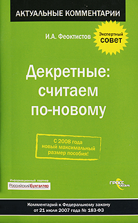 | Полное название книги | И. А. Феоктистов Декретные. Считаем по-новому. Комментарий к Федеральному закону от 21 июля 2007 года № 183-ФЗ |