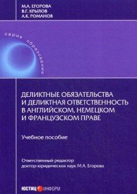 | Полное название книги | М. А. Егорова, В. Г. Крылов, А. К. Романов Деликтные обязательства и деликтная ответственность в английском, немецком и французском праве. Учебное пособие |