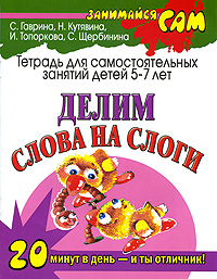 | Полное название книги | И. Топоркова, С. Гаврина, С. Щербинина, Н. Кутявина Делим слова на слоги. Тетрадь для самостоятельных занятий детей 5-7 лет |