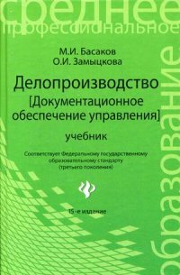 | Полное название книги | О. И. Замыцкова, М. И. Басаков Делопроизводство. Документальнное обеспечение управления. Учебник |