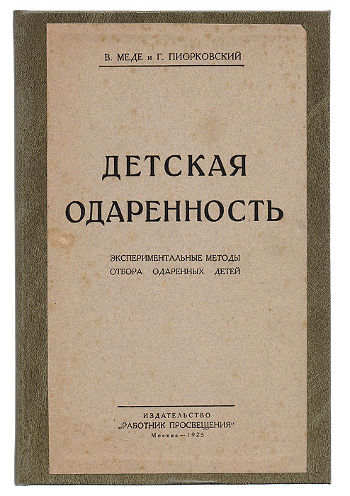 | Полное название книги | В. Меде, Г. Пиорковский Детская одаренность. Экспериментальные методы отбора одаренных детей |