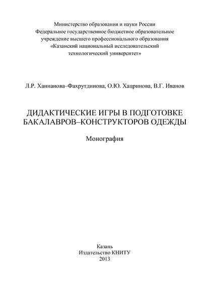 | Полное название книги | В. Г. Иванов, О. Ю. Хацринова, Л. Р. Ханнанова-Фахрутдинова Дидактические игры в подготовке бакалавров-конструкторов одежды |