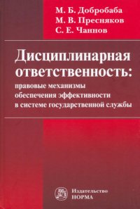| Полное название книги | Марина Борисовна Добробаба, Сергей Евгеньевич Чаннов, Михаил Вячеславович Пресняков Дисциплинарная ответственность. Правовые механизмы обеспечения эффективности в системе госслужбы |