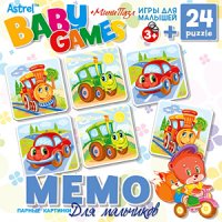 Настольная игра "Мемо" - это очень увлекательная игра для тренировки памяти у малышей. Она является классической игрой на запоминание, и направлена на развитие логического мышления, внимания, зрительной памяти, наблюдательности и образного восприятия. Размер пазла 15х9,8. Рекомендованный возраст 4+ Это и многое другое вы найдете в книге ДМ.Мемо 6306 Для мальчиков (ДМ)