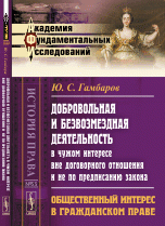 | Полное название книги | Ю. С. Гамбаров Добровольная и безвозмездная деятельность в чужом интересе вне договорного отношения и не по предписанию закона. Общественный интерес в гражданском праве |