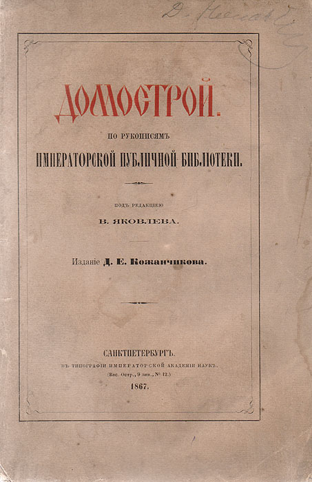 | Полное название книги | Домострой по рукописям Императорской публичной библиотеки |
