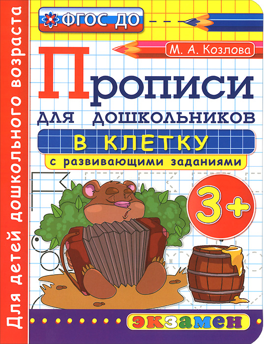 | Полное название книги | М. А. Козлова ДОШКОЛЬНИК. ПРОПИСИ ДЛЯ ДОШКОЛЬНИКОВ: В КЛЕТКУ. 3+. ФГОС ДО |