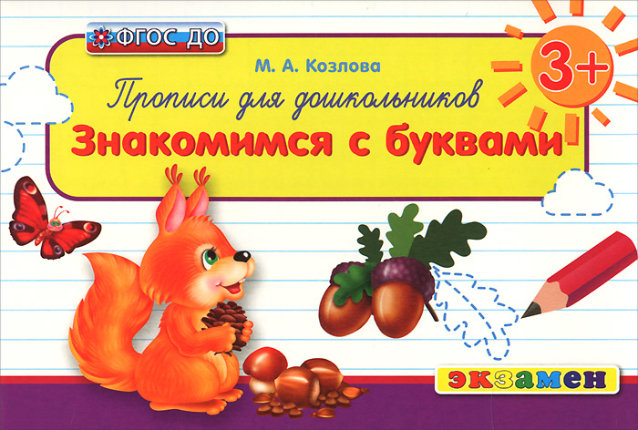 | Полное название книги | М. А. Козлова ДОШКОЛЬНИК. ПРОПИСИ: ЗНАКОМИМСЯ С БУКВАМИ. 3+. ФГОС ДО |